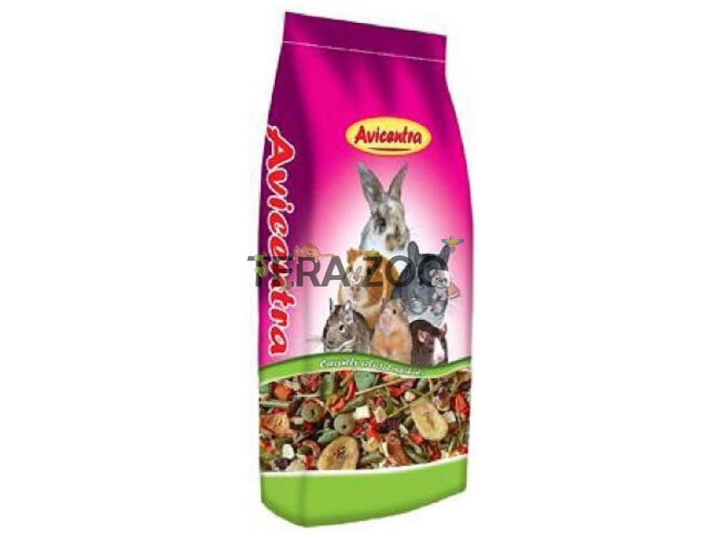 složení: vojtěška, ovoce (šípky, jeřabiny, rozinky, jablka, banány), pšenice, kukuřice, hrachové vločky, svatojánský chléb, zelenina /petržel, mrkev), pšeničné vločky, oves, bylinky.