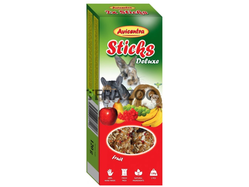 Doplňkové krmivo pro králíky, morčata a další hlodavce. Tyčinky s ovocem jsou výbornou pochoutkou, ale také krmivem, které Vašemu mazlíčkovi dodává důležité vitamíny a minerály pro zdravý a vitální život. Tyčinky jsou speciální krmivo, kde musí Váš mazlíček vyvinout úsilí k získání své potravy podobně jako v přirozeném prostředí. To napomáhá jeho fyzické a psychické kondici.
