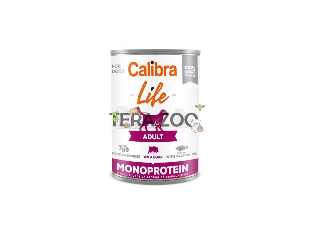 Calibra Dog Life Adult Wild Boar with Cranberries - receptura konzervy s kančím a brusinkami je kompletním krmivem, které je určené pro dospělé psy.