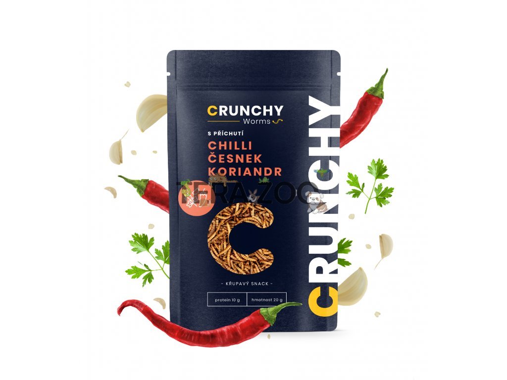Crunchy Worms s příchutí CHILLI, ČESNEK A KORIANDR 20 g