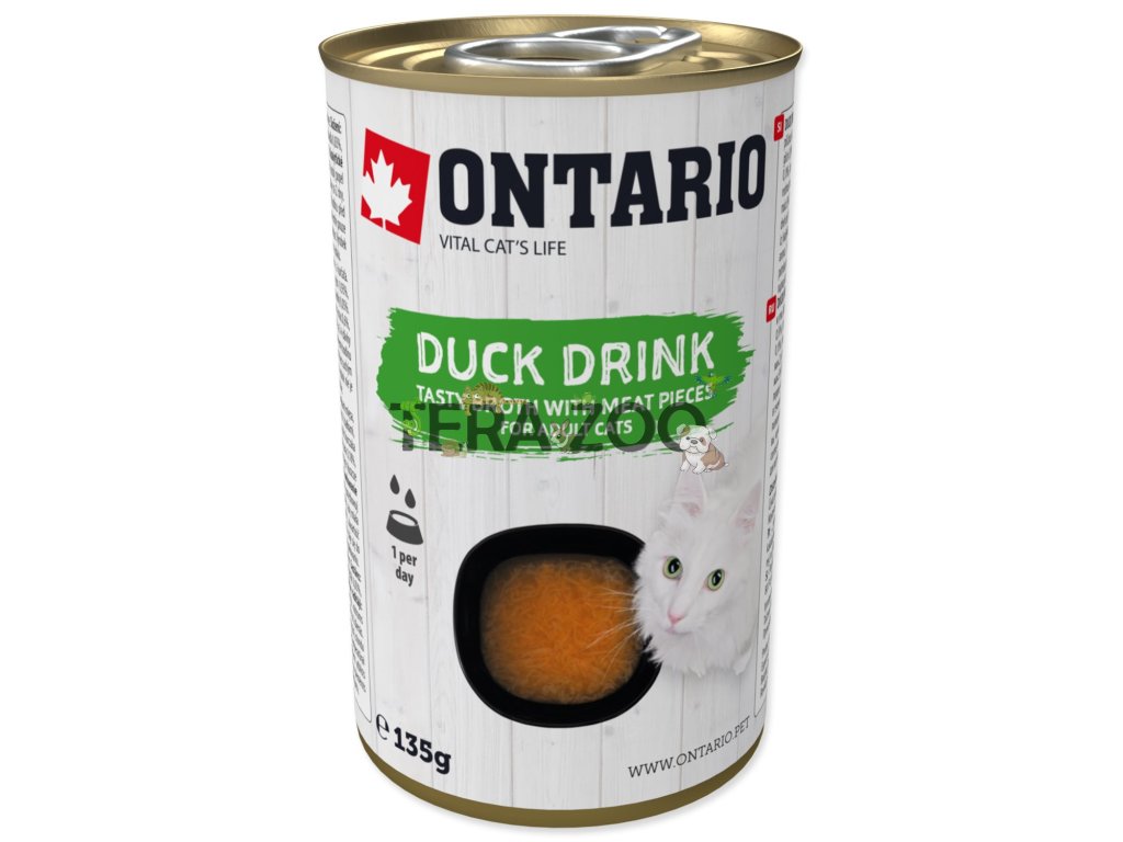 Doplňkové krmivo pro dospělé kočky – nápoj s kousky kachny a kuřete.