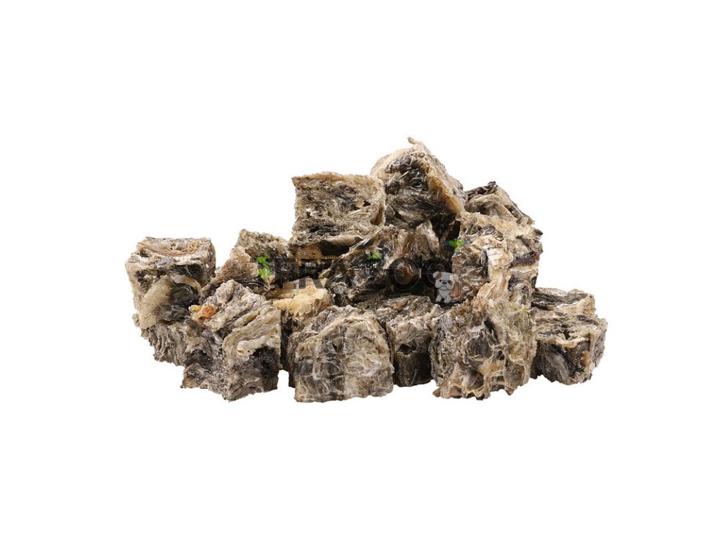 Sušená tresčí kůže v kostičkách jako pouchoutka pro psy.