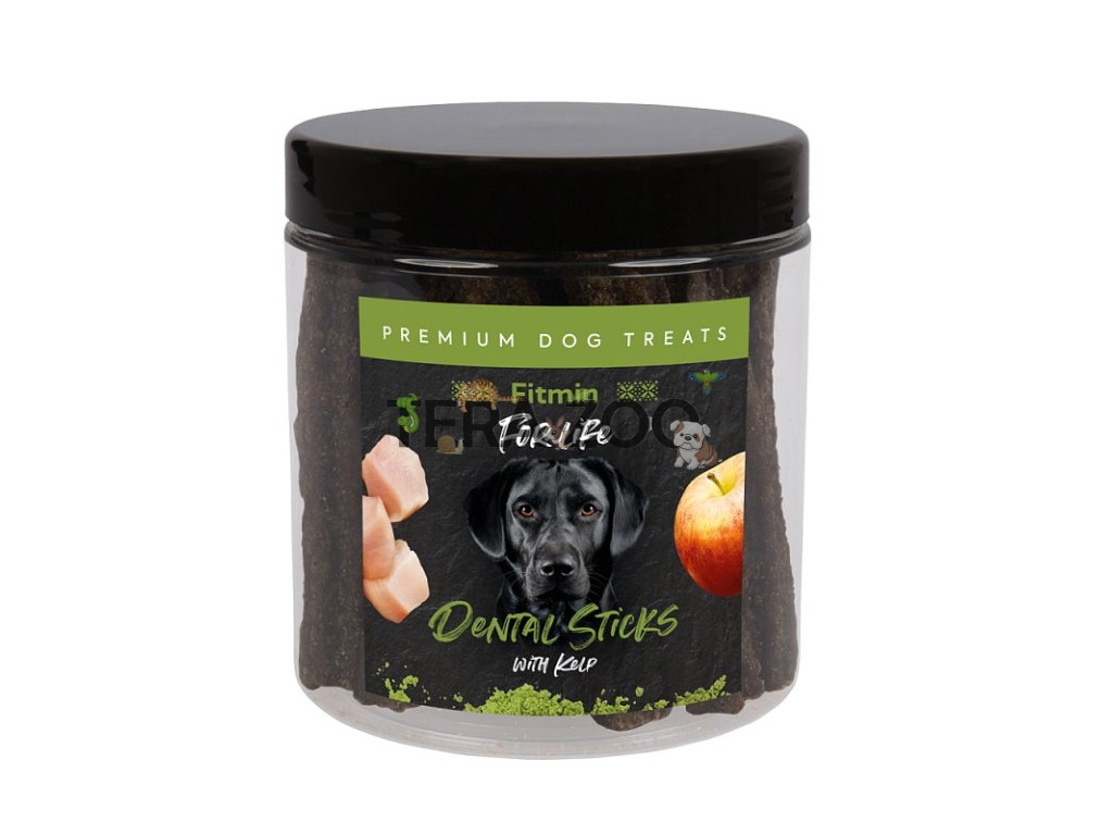 Dentální pochoutka pro psy ve tvaru tyčinek s kelpou napomáhá odstraňování plaku a péči o chrup. Vhodná od 4 měsíců věku.