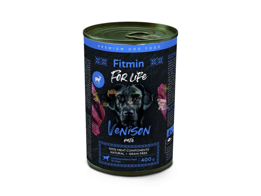 Nová receptura konzerv Fitmin For Life. Zvěřinová konzerva v podobě paté je vyrobena z čerstvého masa a díky tomu si zachovává jedinečnou chuť. Je vhodná jako doplnění a oživení suchého krmiva. Konzervy jsou doplňkové krmivo. Je Váš pes aktivní? Skáče, běhá, aportuje a potřebuje větší příjem energie? Neváhejte mu dát ochutnat zvěřinovou konzervu vyrobenou z čerstvého masa bez obsahu barviv, sóji, aromat a chemických dochucovadel. Díky šetrné přípravě zajišťuje masová konzerva zachování živin a vyvážený poměr vitamínů a minerálů. Díky tomu bude váš pes spokojený a plný energie.