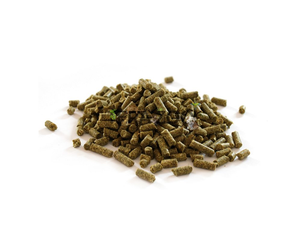 Ječmen, vojtěška horkovzdušně sušená, kukuřice, sojový olej, extrudovaná pšenice, extrudované sojové boby, uhličitan vápenatý, dihydrogenfos-forečnan hořečnatý, lněné semeno 0,5%, chlorid sodný, lignocelulosa, semeno ostropestřece mariánského, dexrin, inaktivované kvasinky rodu Saccharomyces cerevisiae 9000 mg/kg, sušená řasa Schizochytrium limacinum 1000 mg/kg, juka shidigera 500 mg/kg.