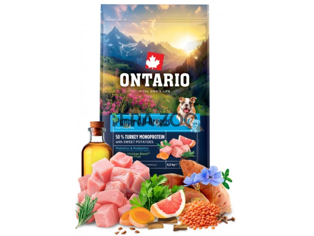 Krmivo Ontario Puppy & Junior All Breeds Monoprotein Turkey & Sweet Potatoes 6,5kg